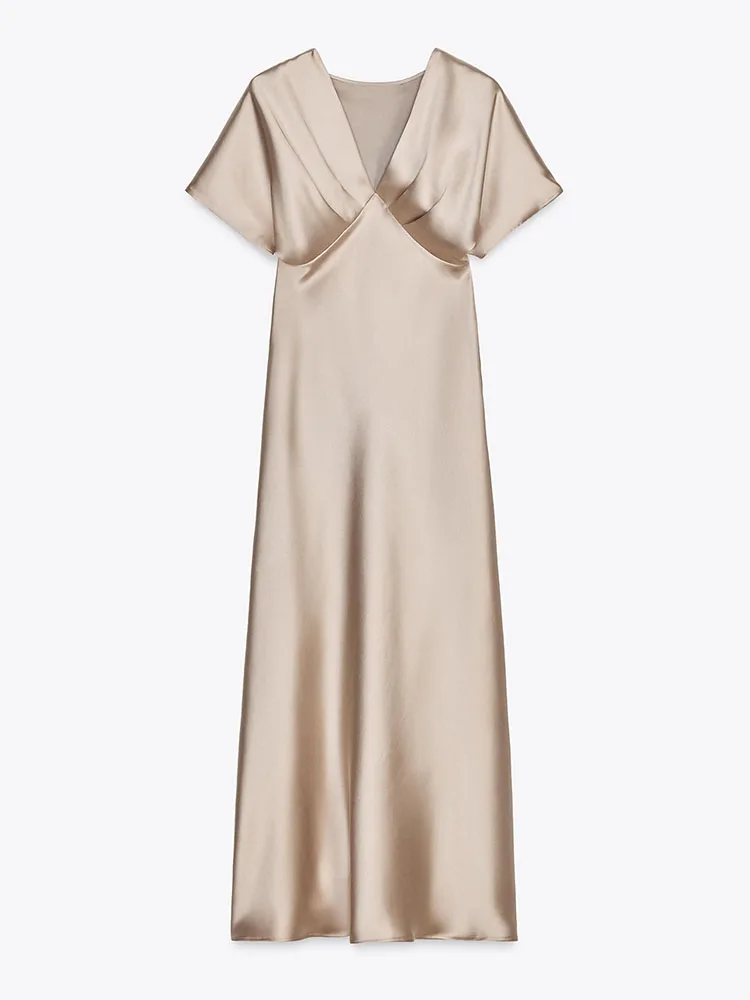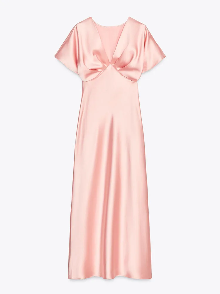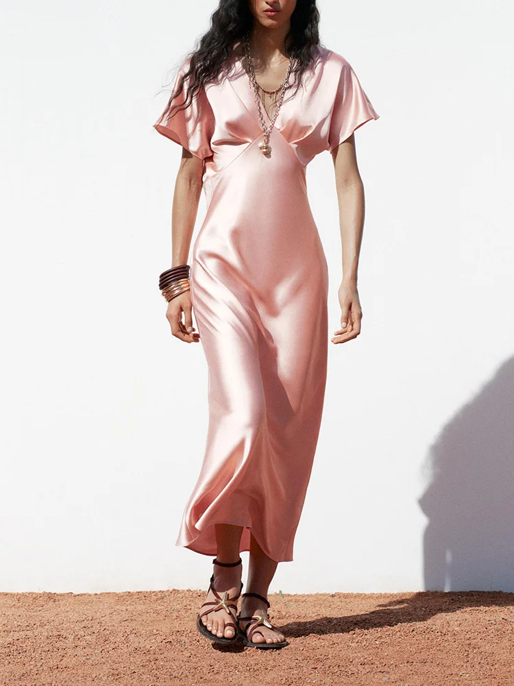 Blush Satin Elegance Maxi Dress – Effortless Chic & Timeless Glamour