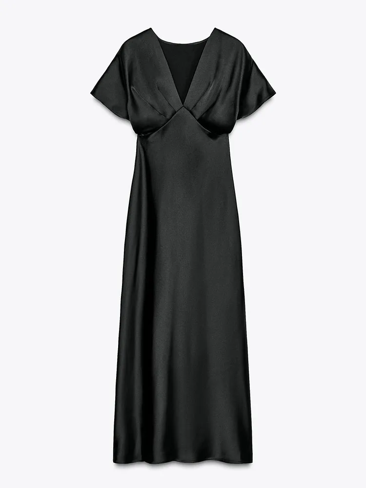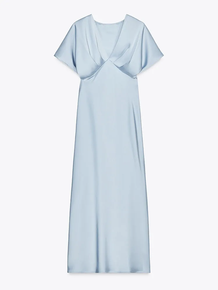 Step into refined elegance with this stunning blush satin maxi dress, designed to flow beautifully with every step. Crafted from silky-smooth fabric with a subtle sheen, it drapes gracefully over the body, creating a flattering and feminine silhouette.