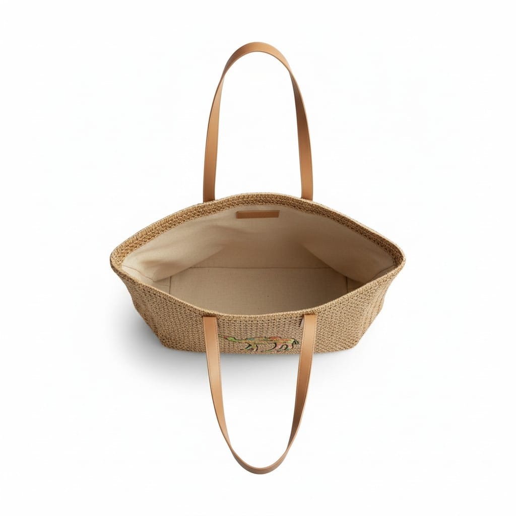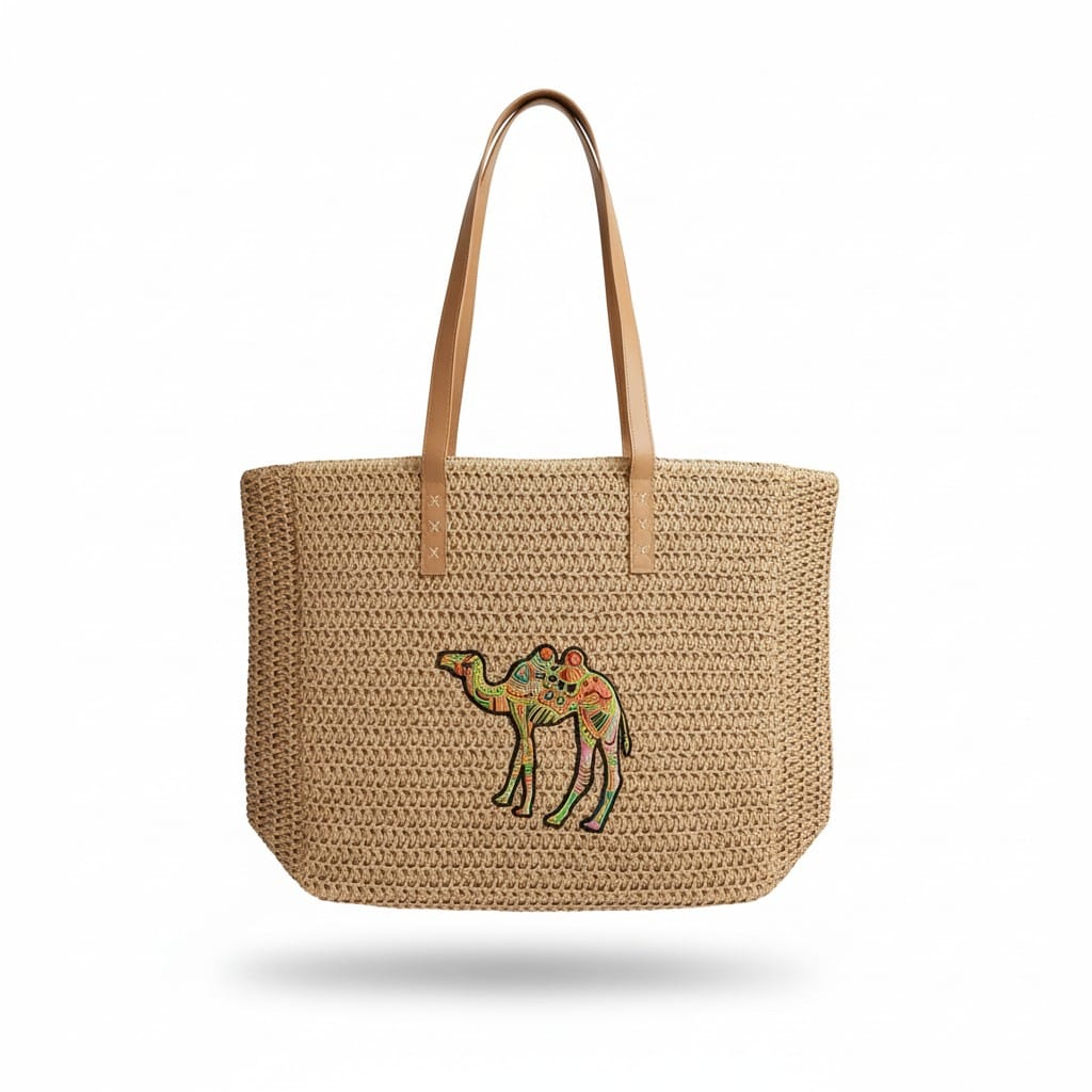 Stylish and practical, this woven straw tote bag features a unique embroidered camel design that adds a touch of charm and character. With sturdy leather-look handles and a spacious interior, it’s perfect for beach days, shopping, or everyday casual outings.
