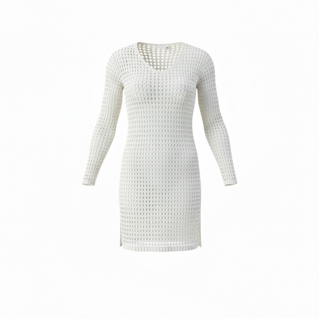 This crochet knit cover-up features a flattering V-neckline and breathable open-knit design. Perfect for layering over swimwear, it offers a stylish and comfortable look for beach days, poolside lounging, or tropical getaways.