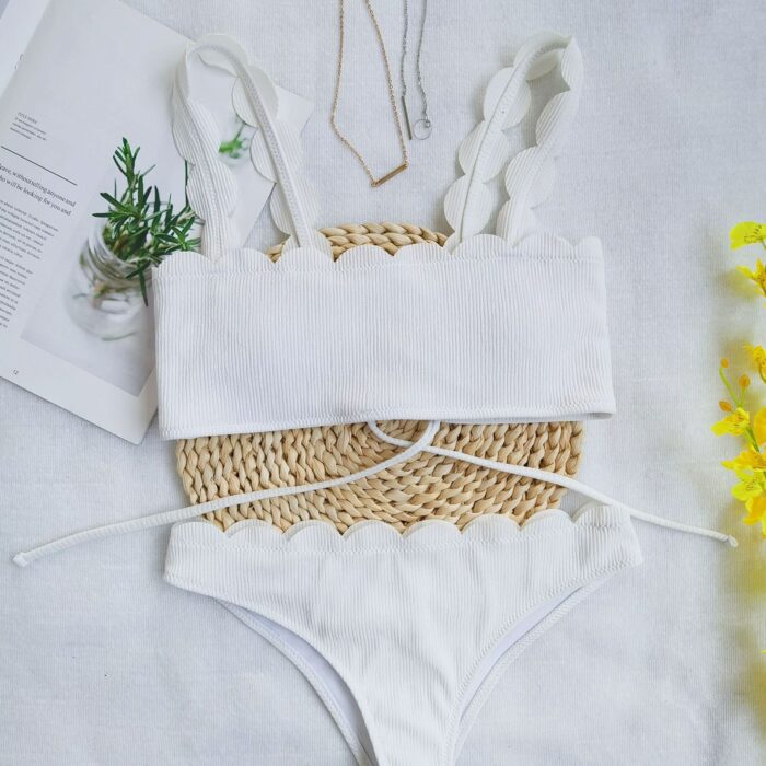 JAYJO’s Curvy Edge Bikini in White epitomizes poolside sophistication. This A grade swimsuit features unique curvy edges that enhance and flatter your natural shape, offering a smooth and elegant silhouette. Its pristine white color adds a touch of refined style, making it perfect for those who appreciate a minimalist aesthetic. Whether it’s a beach day or a resort getaway, this bikini ensures you’ll look effortlessly chic.