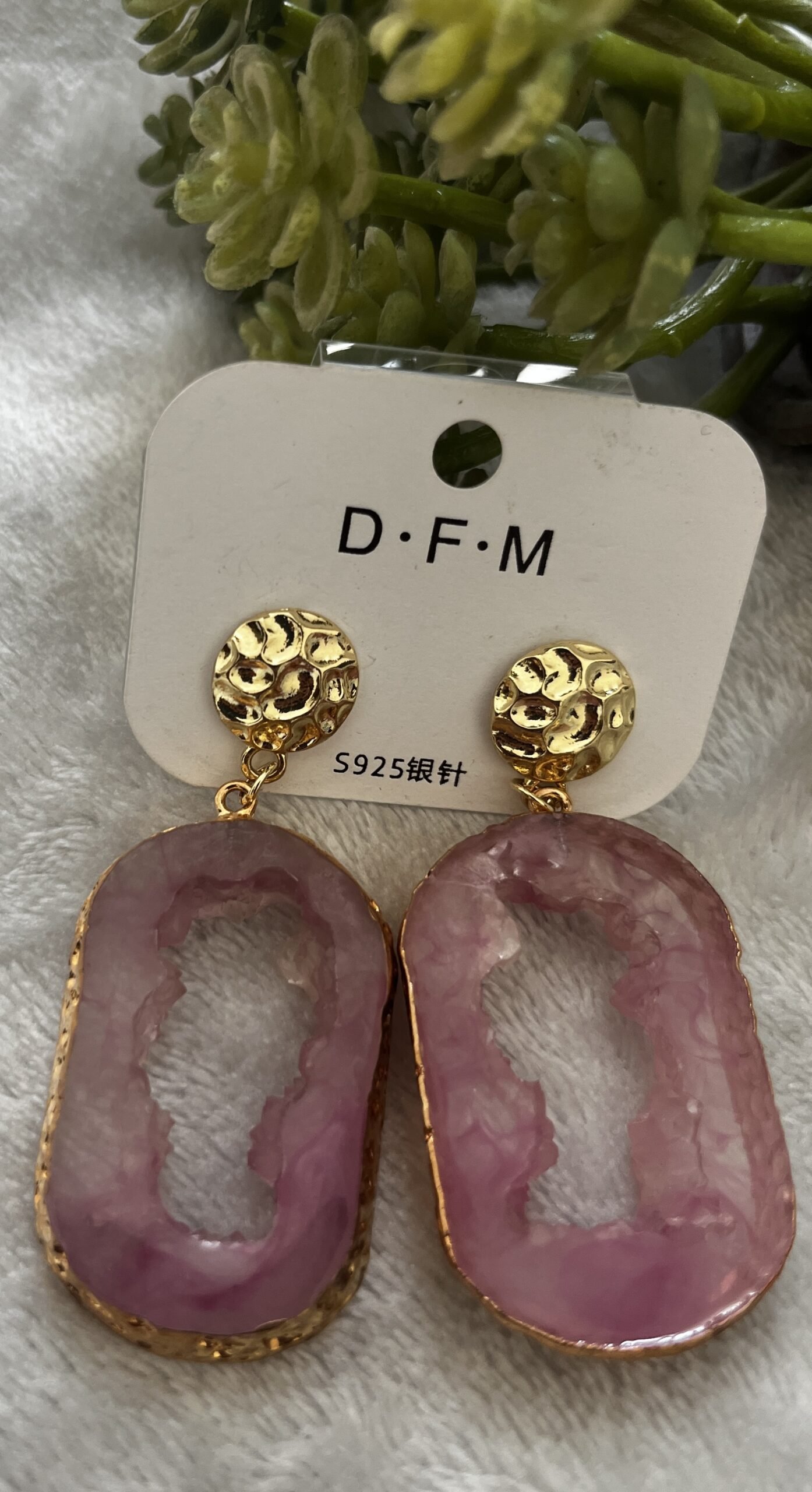 Gold-Toned earring with featuring oval-shaped pink stones with a raw textured center.