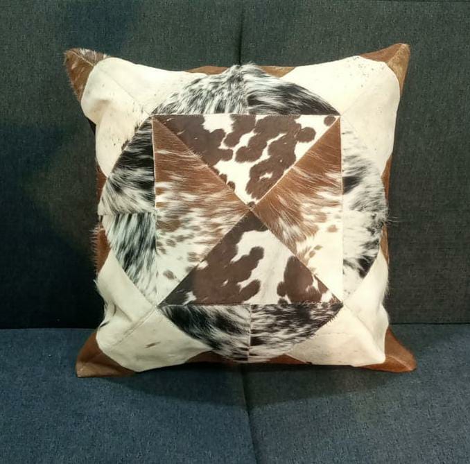 Hair On Leather Cushion Cover Front Patches Hair On Leather Back side is Black Fabric Size : 45cm x 45cm