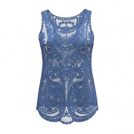 This sleeveless top features intricate lace detailing with a flattering fitted silhouette. The delicate pattern and soft fabric create a