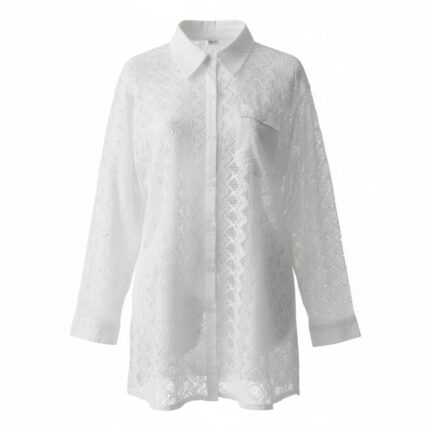 This stylish blouse features delicate lace detailing and a classic button-front design for a refined look. With its lightweight fabric