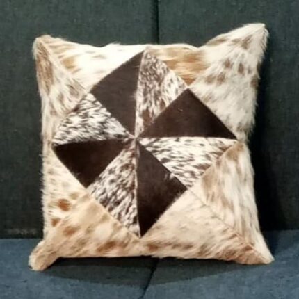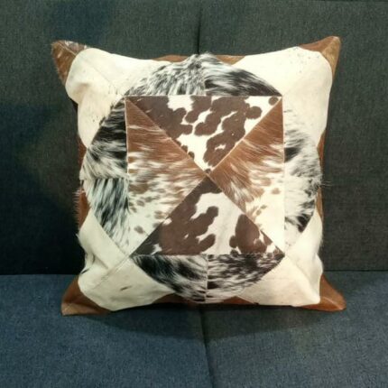 Hair On Leather Cushion Cover Front Patches Hair On Leather Back side is Black Fabric Size : 45cm x 45cm